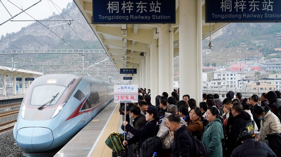 來自貴州省畢節市的556名務工人員,從成貴高鐵畢節站免費搭乘G3707次列車前往廣東省廣州市返崗務工來自貴州省畢節市的556名務工人員,從成貴高鐵畢節站免費搭乘G3707次列車前往廣東省廣州市返崗務工