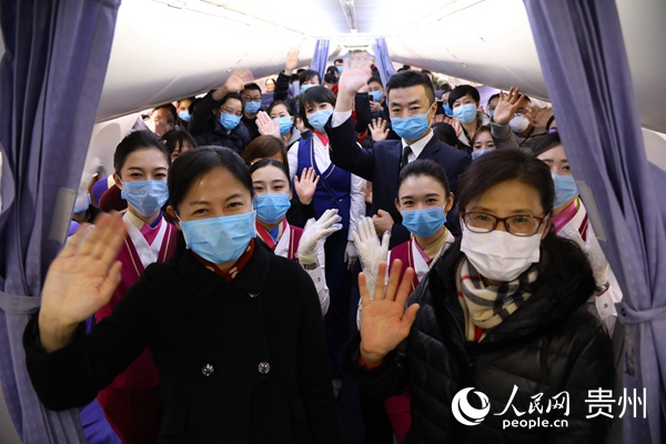 人民網貴陽1月28日電 (趙靜)1月27日深夜23時45分,一架載有2名來自貴州省衛(wèi)生健康委、135名來自貴州9個市州和省屬27家三級綜合醫(yī)院醫(yī)療援助隊人員的飛機——南航“貴州號”在貴陽機場沖云而起,飛向武漢天河機場。