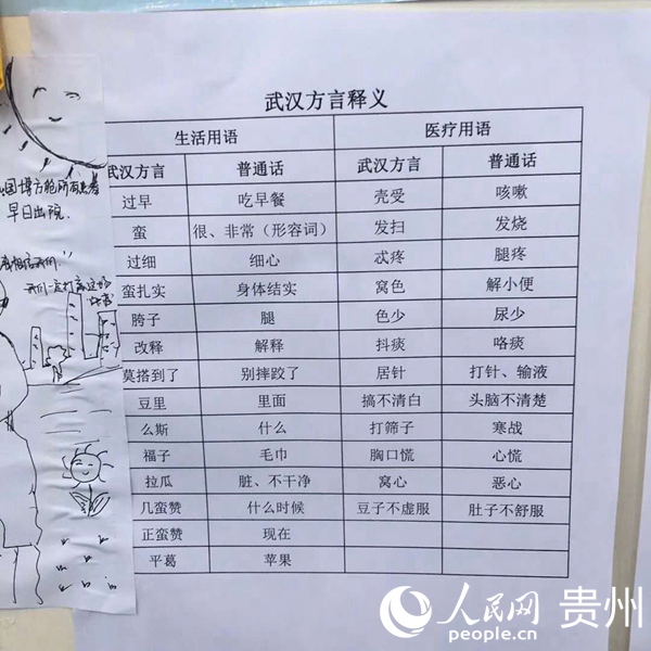 “為此,我還在網(wǎng)上學(xué)了很多武漢方言,現(xiàn)在還說(shuō)得挺溜的。”陳庭媛笑著說(shuō),剛開(kāi)始大家不太能聽(tīng)懂一些老年患者的方言,她上網(wǎng)查了很多并制作成一張“武漢方言釋義表”發(fā)在群里供小伙伴們參考,確保與患者溝通無(wú)障礙。
