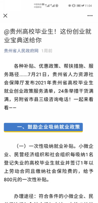 貴州省政府微信公眾號“政策百事通”欄目惠企利民