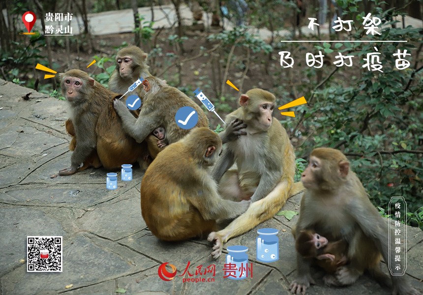 面對即將到來的游客,貴陽黔靈山的“猴兒”們申請出道,提醒省內外游客,疫情防控仍不可小覷,保護好自己是對社會做出的最大貢獻。