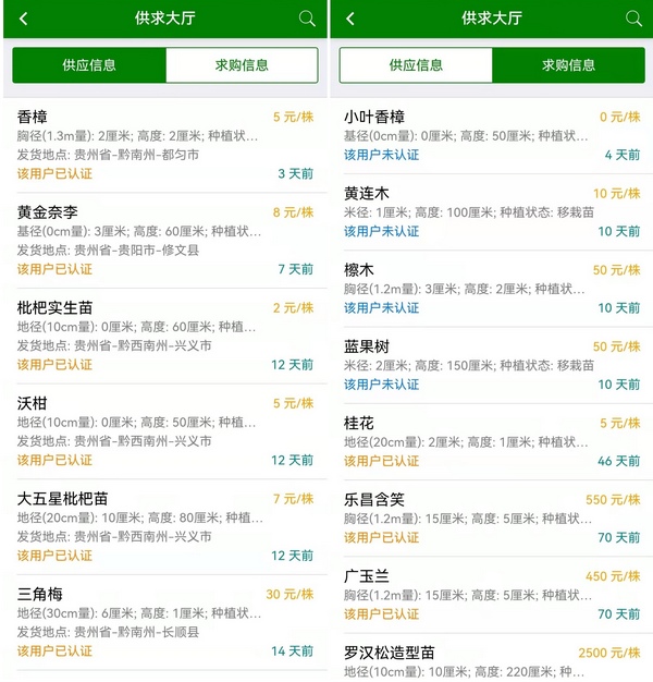 軟件“供求大廳”版面界面。貴州省林業(yè)種苗站供圖。