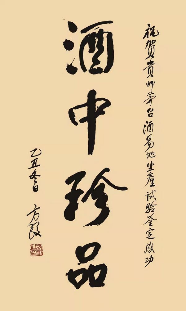 試制酒鑒定成功后的第二個月,時任貴州省科委秘書長的巫怒安就與鄭光先等人帶著成功的喜悅,再次走進了方毅副總理的辦公室。“方毅副總理認真聽取鑒定情況匯報,并仔細審閱了鑒定會文件,聽到項目成功他很高興。在親自品嘗了試制酒后,方老連說‘不錯,是好酒!’”巫怒安表示,后來方毅副總理還親自揮毫,寫下“祝賀貴州茅臺酒易地生產試驗鑒定成功——酒中珍品”的題詞。