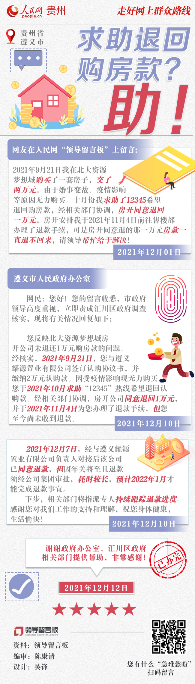 急難愁盼 | 求助退回購房款?當地政府:持續跟進!