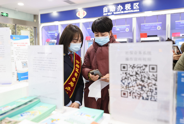 群眾在電子稅務(wù)操作區(qū)自主辦理相關(guān)業(yè)務(wù)。郭然攝