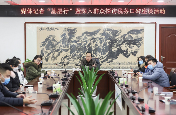 媒體記者與貴陽稅務(wù)工作人員及企業(yè)交流辦稅新變化。郭然攝