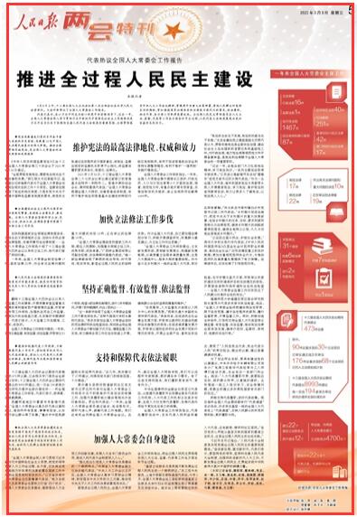 就推進全過程人民民主,全國人大常委會工作報告指出,把全過程人民民主貫徹落實到人大立法、監督、代表等工作各方面各環節全過程。