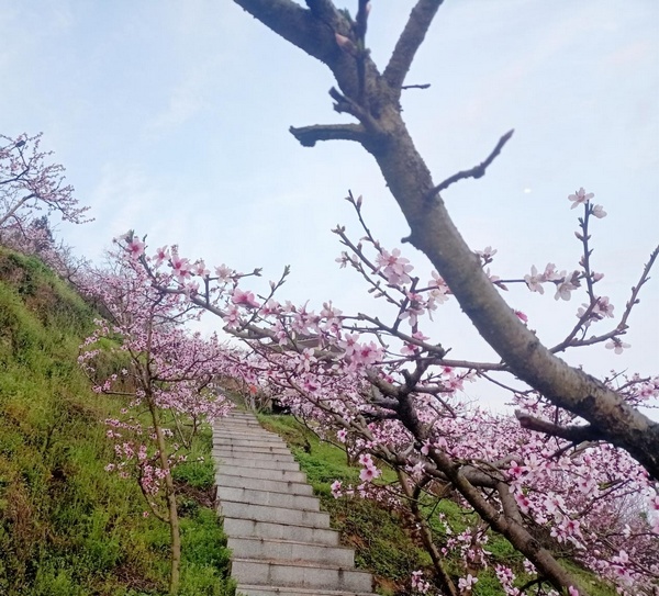 米坪鄉山體公園內綻放的桃花。羅萬群攝