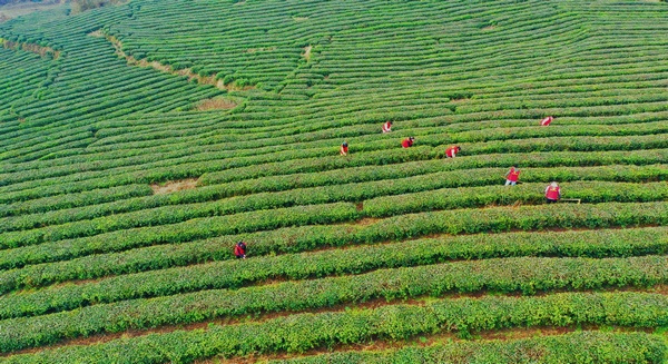 開(kāi)陽(yáng)縣南龍鄉(xiāng)茶葉基地里,群眾在收采春茶。袁福洪攝