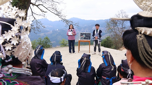 據了解,黔南州住房公積金三都管理部和有關部門來到三都縣都江鎮月亮村排抱大寨,用雙語給當地的村民們宣講住房公積金政策。排抱大寨是一個典型的苗族聚居寨,這里的苗族人口占到了85%以上。