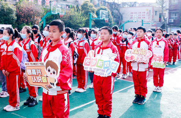 18日一早,曾郁分別帶隊前往兩所民辦小學,將孩子一個不落地接進云巖第一小學。“為消除孩子的陌生感,我們舉行了隆重熱烈的歡迎儀式!痹粽f,儀式感滿滿的歡迎儀式,既讓孩子有歸屬感,又能增加他們對新環境的興趣。另外,為讓分流學生盡快了解和熟悉校園環境,老師還帶著孩子進行了校園環境教育。