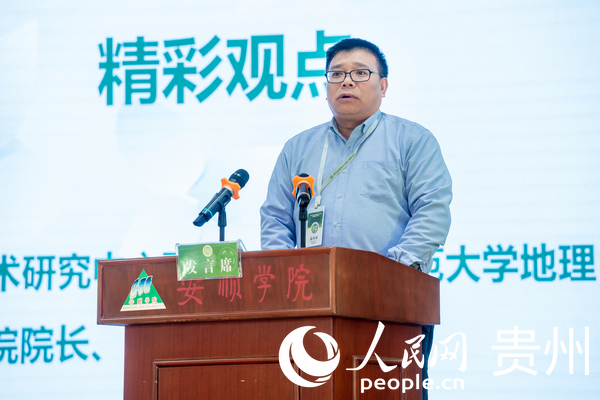 貴州師范大學地理與環境科學學院院長周忠發教授分享上午學術論壇專家發言的精彩觀點。人民網 涂敏攝