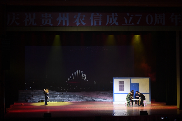 據(jù)了解,大型原創(chuàng)話劇《傳承》是為慶祝貴州農(nóng)信成立70周年而創(chuàng)作,全劇時長1小時30分鐘。該劇通過5位農(nóng)信員工真實原型故事改編,以貴州省第一家農(nóng)村信用社(桐梓縣元田信用合作社)成立的歷史事件為線索,貫穿多條情感主線,回顧了貴州農(nóng)信自1952年成立以來艱辛而輝煌的發(fā)展歷程。