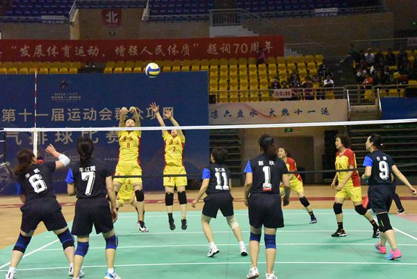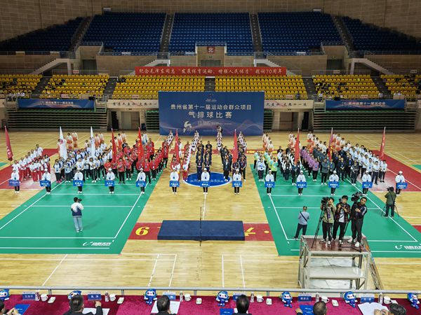 貴州省第十一屆運(yùn)動(dòng)會(huì)群眾項(xiàng)目氣排球開賽。張雷攝