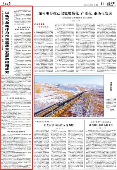 1月31日,江蘇張家港,高新技術民營企業盛虹控股集團的儲能電池超級工廠和新能源電池研究院項目簽約,達產后預計年營收超560億元。該企業負責人表示:“新時代的民營企業應當從創新研發中要效益、尋藍海,我們對未來充滿信心!”