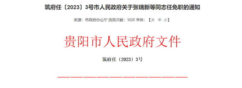 張瑞新同志任貴陽市財政局副局長(試用期一年);