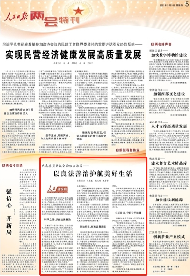 代表委員表示,要貫徹落實習近平法治思想,系統研究和解決法治領域人民群眾反映強烈的突出問題,依法保障人民權益。