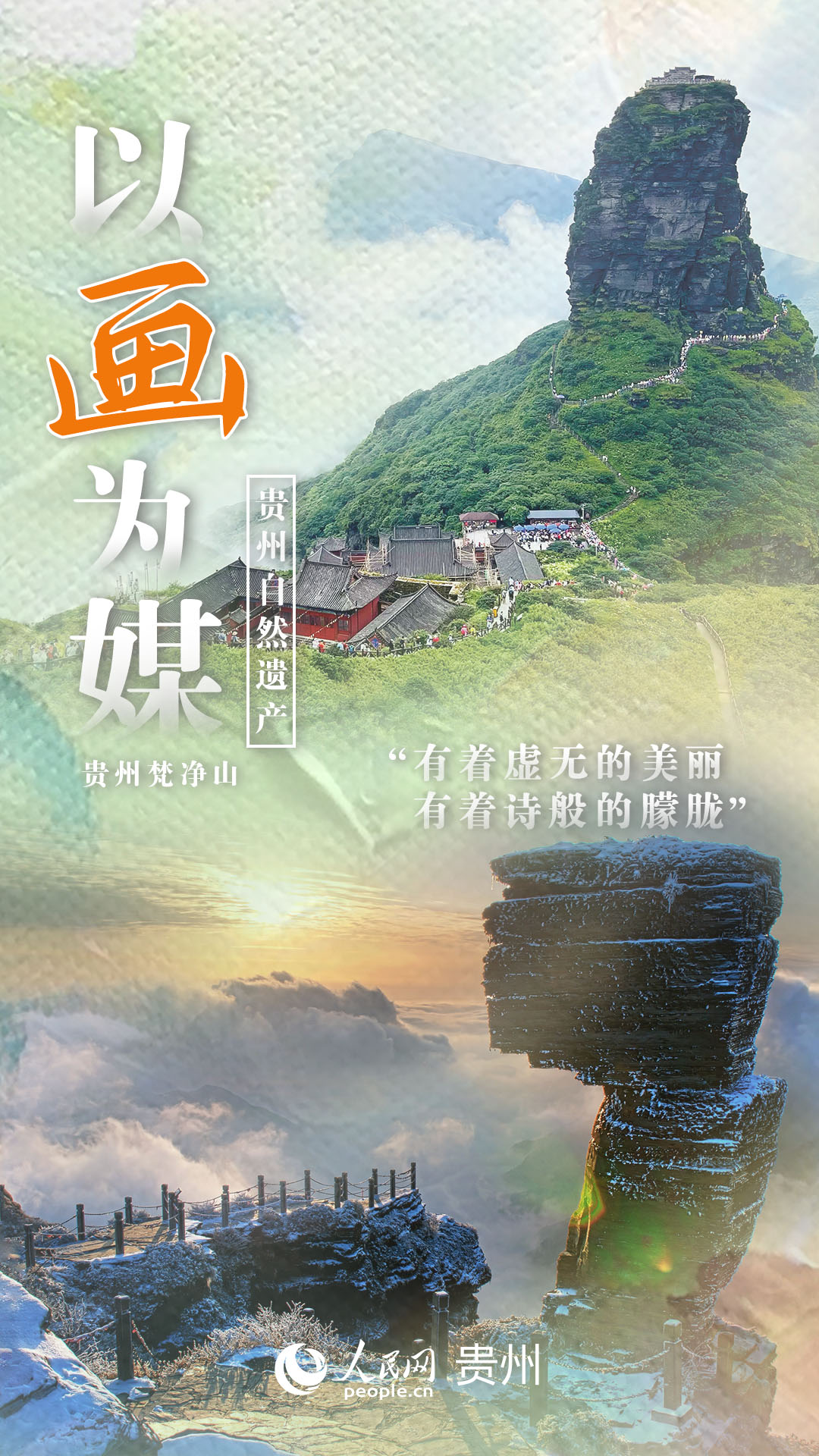 “銀裝素裹 云霧縹緲,猶如一幅 水墨畫卷”