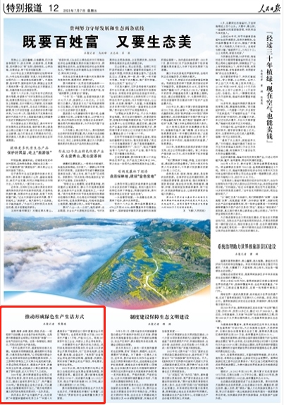 貴州將持續推動形成綠色生產方式和生活方式,不斷提高經濟增長“含綠量”,讓“綠色化”貫穿經濟社會高質量發展方方面面。
