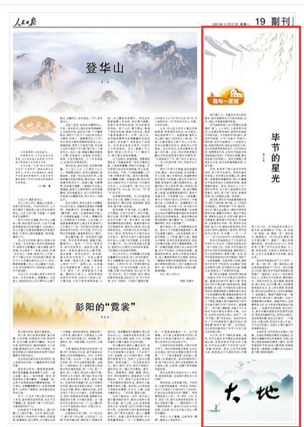 我在畢節城里度過了三年美好的求學時光,畢業后,分配到老家附近的一所小學里工作。但是,畢節的星光仍然不時閃爍在我的腦海里,激勵我在工作之余堅持讀書、筆耕不輟。后來,畢節市委宣傳部創辦《畢節晚報》,我成了一名報紙編輯。也是在那個時候,國家加大對畢節“開發扶貧、生態建設”試驗區的幫扶力度,畢節城沐光以滋、吸露以潤,漸漸走上了發展的快車道。