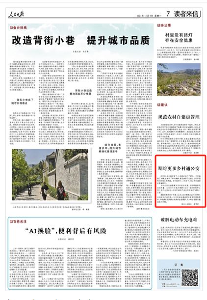 期盼有更多的鄉(xiāng)村通上公交,在方便群眾出行的同時(shí),也活躍農(nóng)產(chǎn)品交易。讓農(nóng)村客運(yùn)提供更豐富更優(yōu)質(zhì)的服務(wù),不斷滿足農(nóng)民群眾的美好生活需要,為鄉(xiāng)村全面振興提供有力支撐。