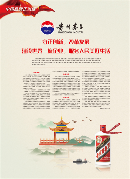 從中國西南地區(qū)赤水河畔僅39人的小酒坊,到營業(yè)收入千億級的大型現(xiàn)代企業(yè),茅臺一步步走向世界,成為世界烈酒第一品牌。改革是應(yīng)對變局、開拓新局的關(guān)鍵舉措,70余年來,貴州茅臺始終堅(jiān)守品質(zhì),守正創(chuàng)新,把握歷史機(jī)遇,順應(yīng)時(shí)代浪潮,以改革之勢,聚創(chuàng)新之力,賦發(fā)展之能,圍繞“高質(zhì)量發(fā)展、現(xiàn)代化建設(shè)”目標(biāo)拼搏奮進(jìn),建設(shè)世界一流企業(yè),服務(wù)人民美好生活。