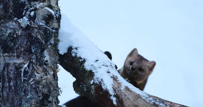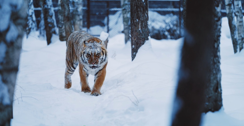 跟隨兩位主角的步伐,萬物生靈肆意奔跑,長白山的冬日美景也如畫卷一般徐徐展開。雪花滋潤大地,一朵花破土而出,人類踏上了這片雪域。