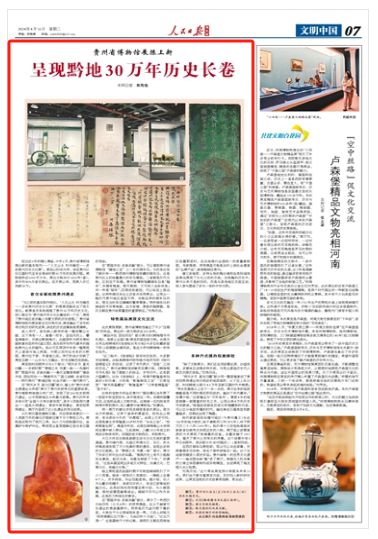 “與之前的基本陳列相比,‘人文山水 時光峰巒——多彩貴州歷史文化展’的策展思路發生了很大變化。新展首次系統梳理了貴州30萬年歷史文化,核心理念為‘貴州是中華文化主藤結的一個瓜’,展現了貴州地區逐步融入華夏文明的歷史進程。”貴州省博物館陳列展覽部主任劉秀丹說,展覽融合了多年的考古和歷史研究成果,講述的歷史故事脈絡更清晰。