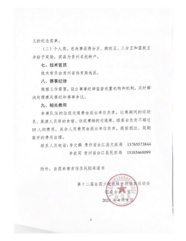 筆者從舉辦方獲悉,此次全國民族團結“村BA”籃球邀請賽將于6月9日在“村BA”發源地——貴州省臺江縣臺盤村籃球場舉行開幕式。本次賽事以抽簽方式將20支球隊分為4個小組(每小組5支球隊),6月中下旬在臺盤村每周五、周六、周日開展小組晉級賽,各小組的第1名出線進入決賽階段,決賽(閉幕式)將于6月30日在貴州省臺江縣臺盤村舉行。獲獎的隊伍和個人將頒發具有民族團結進步意義的紀念獎章和貴州名優特產獎品。