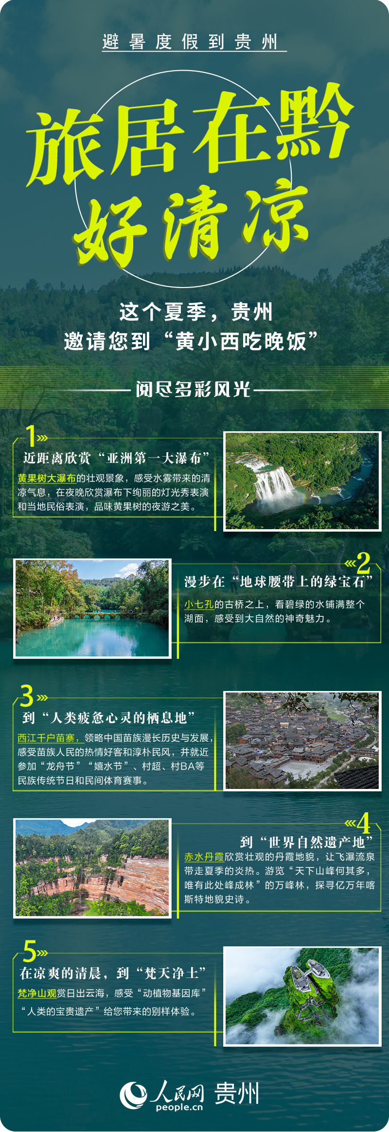 入黔旅游消炎夏,避暑度假正當時。近日,貴州推出五大夏季避暑旅游產品,旨在吸引更多游客前來體驗貴州的清涼夏日,感受其自然美景、美食和文化魅力。此次發布不僅為游客提供了多樣化的避暑選擇,也展示了貴州在旅游資源開發和創新方面的努力和成就。通過這些精心策劃的旅游線路,游客可以深入探索貴州的獨特魅力,度過一個難忘的夏天。為了讓大家更好地了解這五大避暑產品,小編特別制作了五張圖,詳細介紹每個產品的特點和亮點,帶您全面探索貴州的夏日之美。