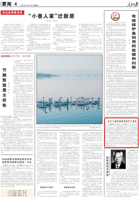 本報(bào)貴陽12月4日電 (記者程煥)2日,烏江航運(yùn)擴(kuò)能工程烏江渡——龔灘三級航道建設(shè)工程在貴州德江港舉行開工儀式,標(biāo)志著烏江三級航道貴州段正式開工。該項(xiàng)目建設(shè)按三級航道通航1000噸級船舶標(biāo)準(zhǔn)整治烏江干流407公里航道和清水河支流24公里航道,旨在進(jìn)一步保障烏江航道安全運(yùn)行、提升通道效能,加快構(gòu)建現(xiàn)代化高質(zhì)量綜合交通運(yùn)輸體系。