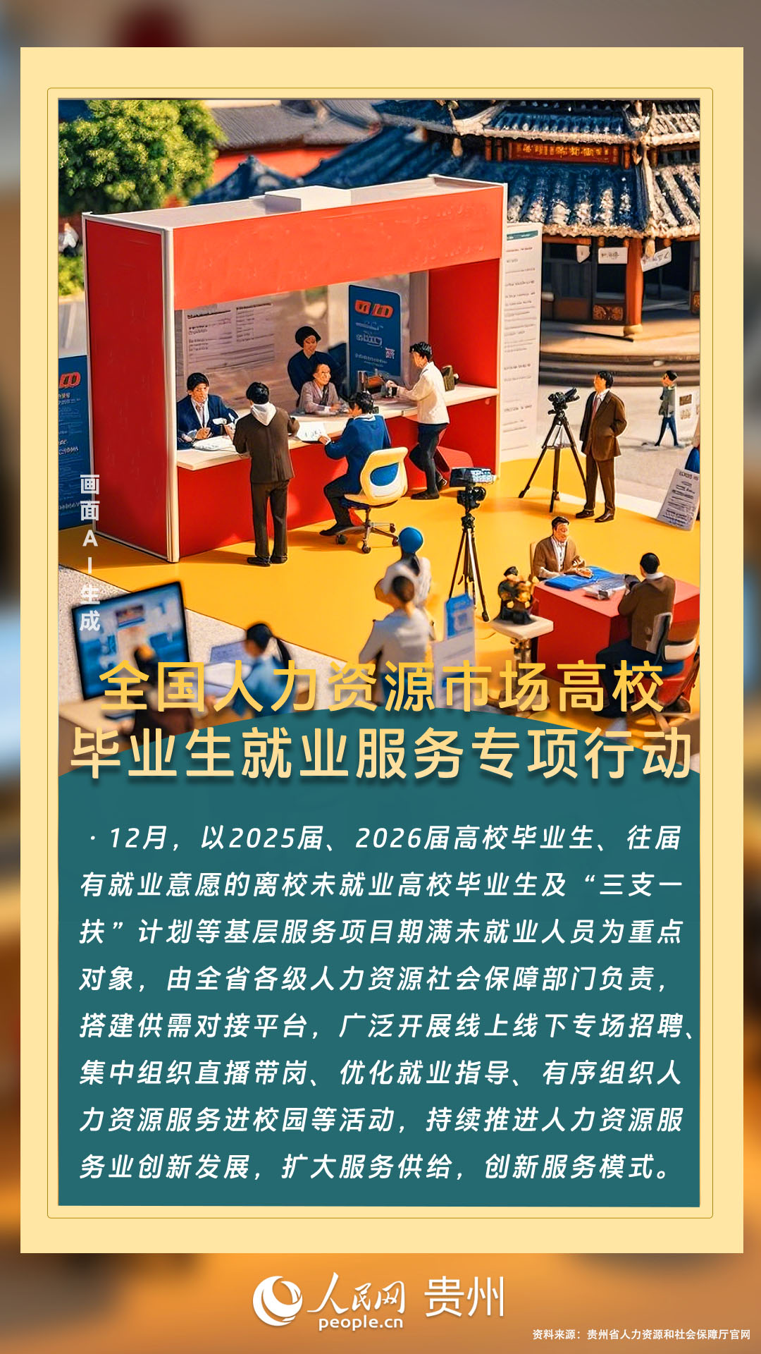 《通知》表明,為深入落實“六六就業穩崗計劃”,進一步加強人力資源供需匹配,提升就業創業指導服務質量,積極推動高校畢業生就業創業,貴州將于2025年3月至12月開展“職引黔程 點亮未來”高校畢業生公共就業服務系列活動。