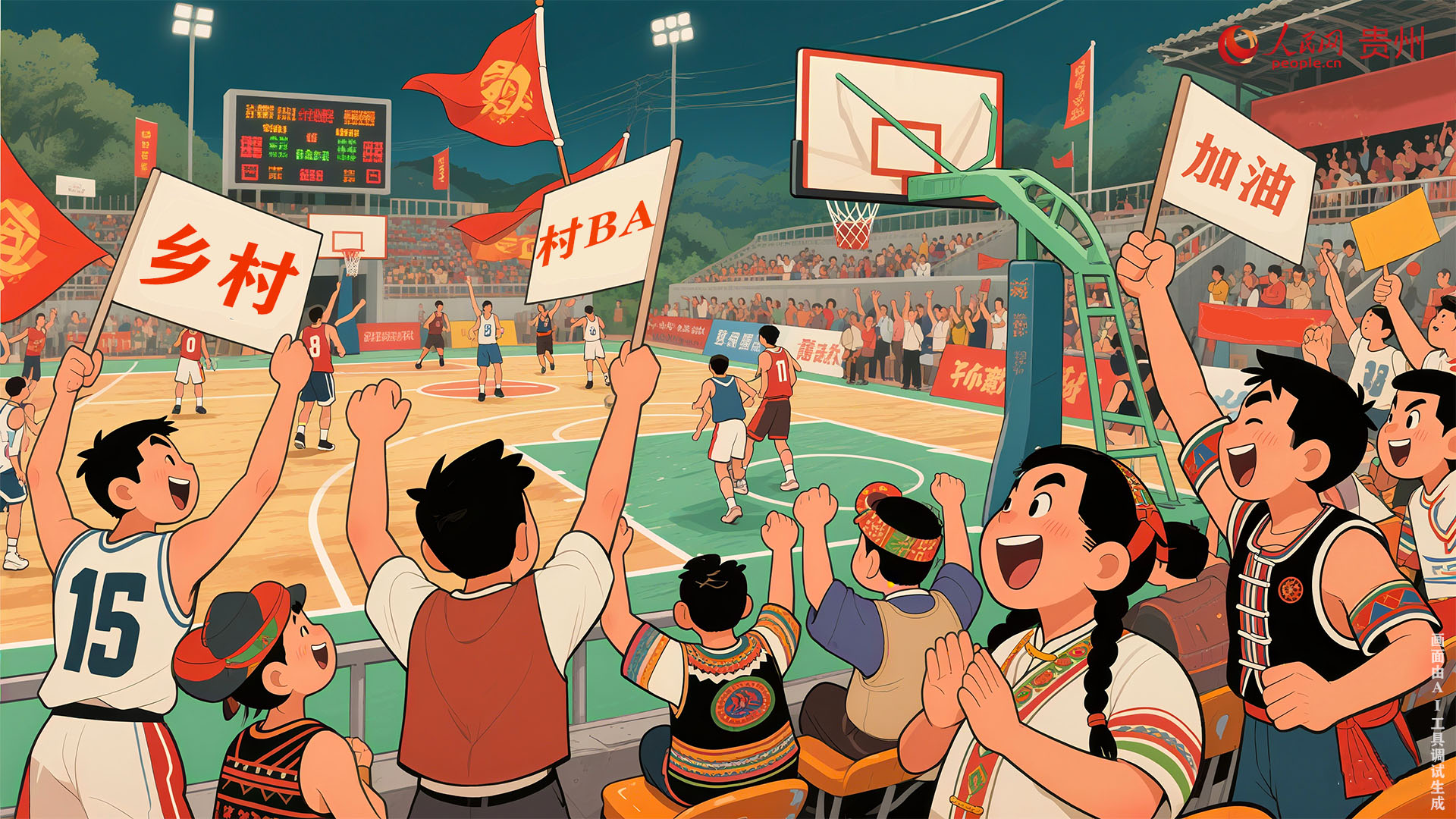 為家鄉(xiāng)的籃球隊加油助威