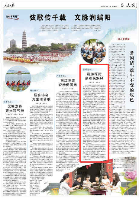 巡游踩街活動由當地傳承上百年的端午習俗“游百病”演變而來。“我們相信,端午節當天要進行戶外活動,親近大自然,呼吸新鮮空氣,可驅除疾病,祈愿安康。”惠水縣民間文藝家協會會長羅惠萍介紹,“巡游踩街的前一晚,婦女們會用十來斤糯米做一個大粽子,這也是我們的健康、平安粽。”