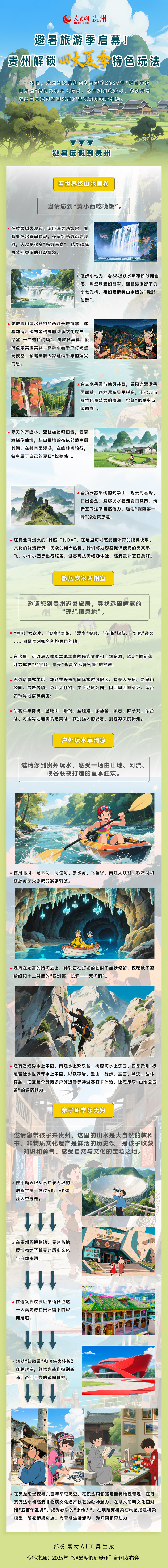 夏日炎炎,避暑旅游正當時!2025年貴州避暑旅游季啟幕,多彩貴州攜四大特色玩法與優惠活動,邀您共赴清涼之約。在這里,可賞世界級山水畫卷,黃果樹大瀑布轟鳴如雷、彩虹隱現,小七孔橋宛如 “綠野仙蹤”,梵凈山云海翻涌;能開啟旅居安家模式,在 “涼都” 六盤水等多地,體驗民族文化、享受舒適氣候;還可戶外玩水享清涼,漂流、探洞等項目帶來夏日狂歡;更有親子研學之旅,借山水與非遺,讓孩子收獲知識與勇氣。這個夏天,奔赴貴州,在山水間、民俗里、玩鬧中,解鎖專屬清涼與美好,邂逅不一樣的夏日精彩!