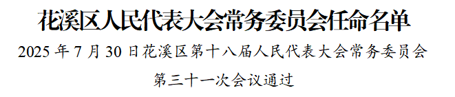 7月30日,花溪區(qū)第十八屆人民代表大會(huì)常務(wù)委員會(huì)第三十一次會(huì)議通過(guò)一批人事事項(xiàng)。