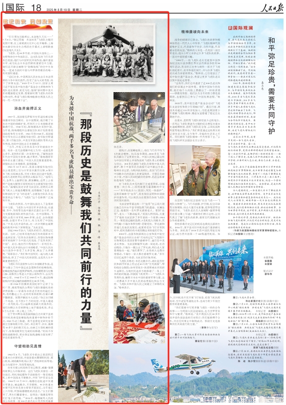 談起1944年加入飛虎隊的經歷,莫耶記憶猶新。當時,已結束其他作戰任務的莫耶本可以選擇回家,“但我告訴指揮官,我想在陳納德將軍的指揮下為中國人民而戰,于是我來到了中國”。此后,他在四川等地執行一系列任務,與中國人民并肩抗擊日本侵略者。“中國人民在抗日戰爭中承受了太多苦難,做出了太多犧牲。”莫耶表示,“我們和中國軍民一起與敵人頑強作戰,保衛了中國人民的家園,這是我人生中最重要的經歷。”