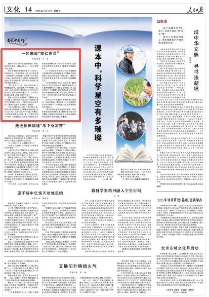 “《天上有顆“南仁東星”》,我們想以‘星’字做文章,既體現(xiàn)南仁東探索宇宙的貢獻,也引出以‘南仁東星’為名的小行星?!标愱卣f,“這是應該帶著學生追的‘星’?!北M管只有初二年級學習這篇課文,但學校計劃在初三年級組織排練舞臺劇,以不同的學習形式,讓更多學生感悟科學家精神,播撒科學報國的種子。